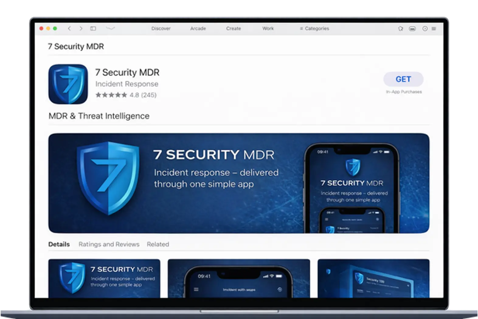 7 Security MDR-app möjliggör omedelbar incidenthantering. Snabb aktivering och er incidentrespons är live – helt driftad av 7 Security som din Managed Security Service Provider (MSSP).
